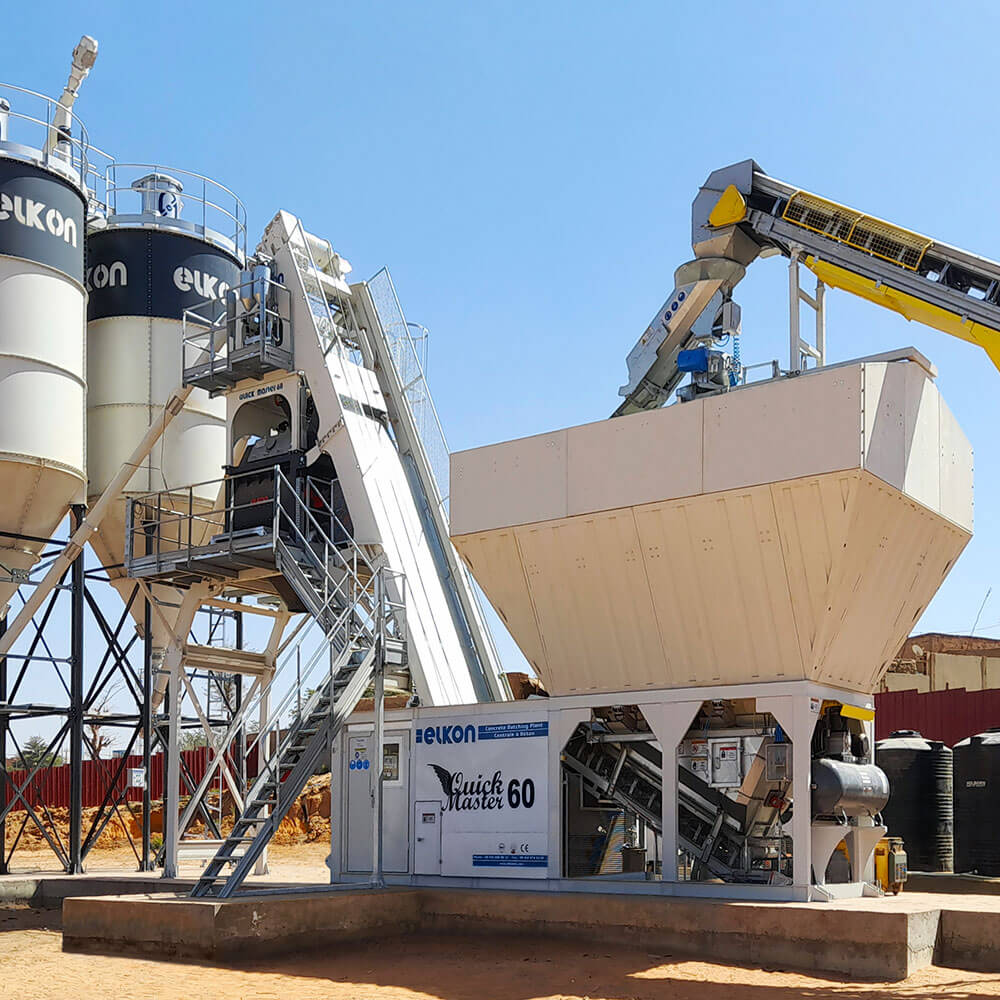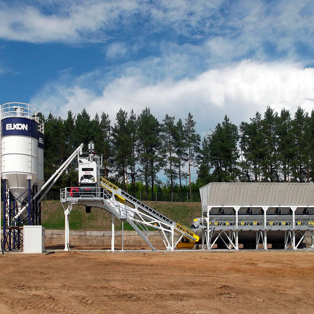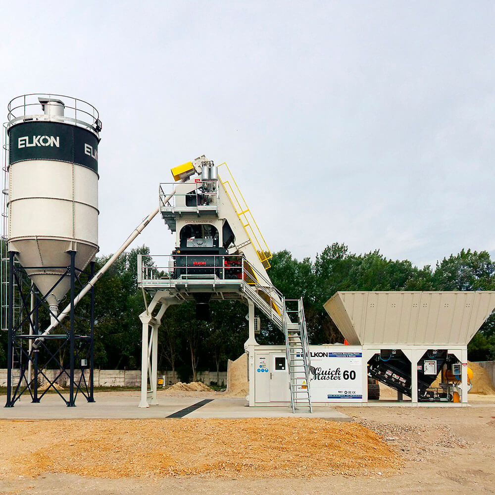 Planta de concreto compacta Elkomix-60 Quick Master se envía preinstalada y precableada desde las fábricas de ELKON, se puede instalar y poner en marcha en 1 día.